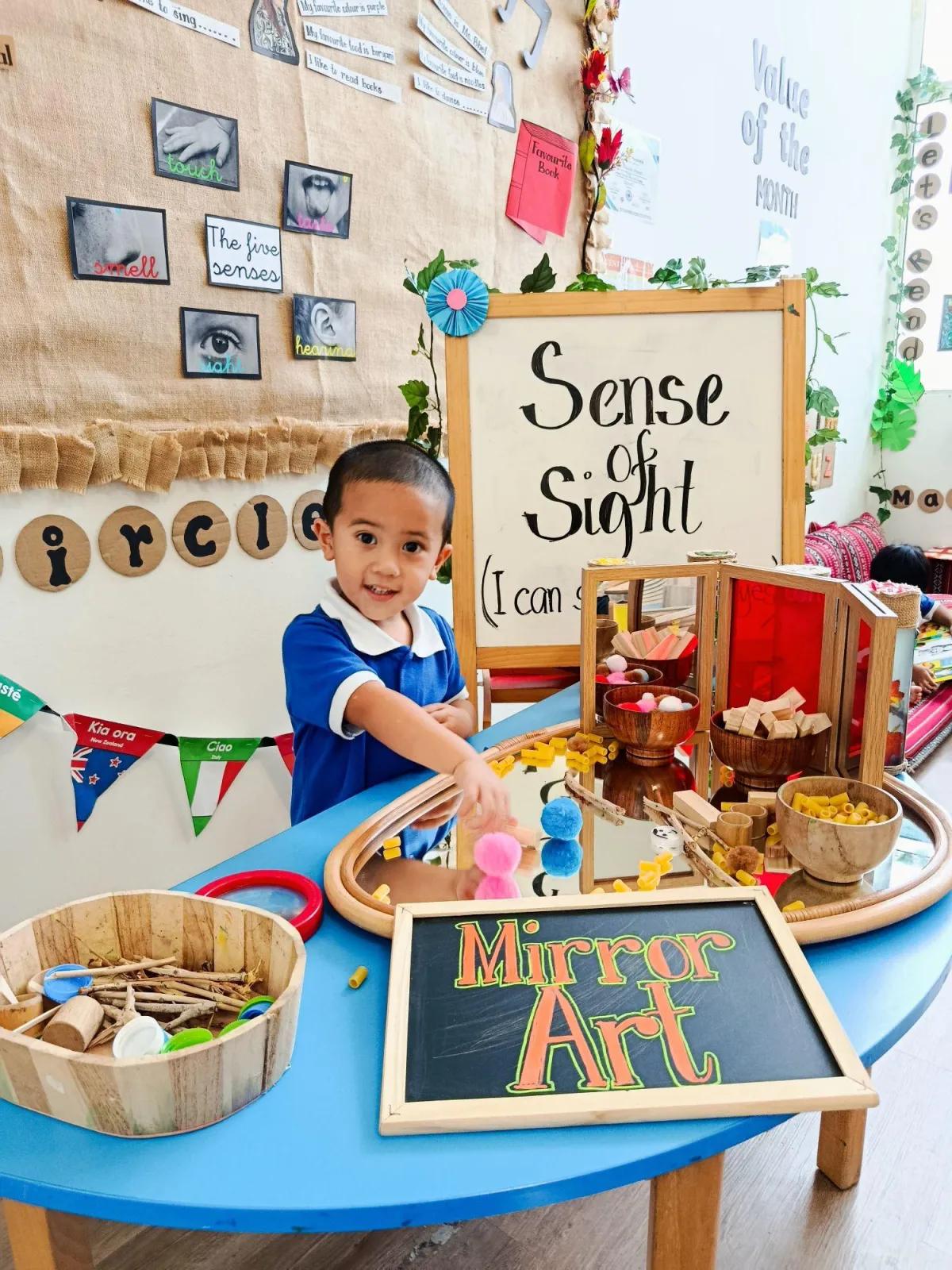 At Discovery Nursery, you’ll find a caring and supportive setting, where every detail is carefully designed to spark joy, curiosity, and discovery. Our classrooms follow the British Early Years Foundation Stage (EYFS) framework, enriched by the Reggio Emilia philosophy, which uses natural materials, calming colours, and open-ended resources to invite exploration.