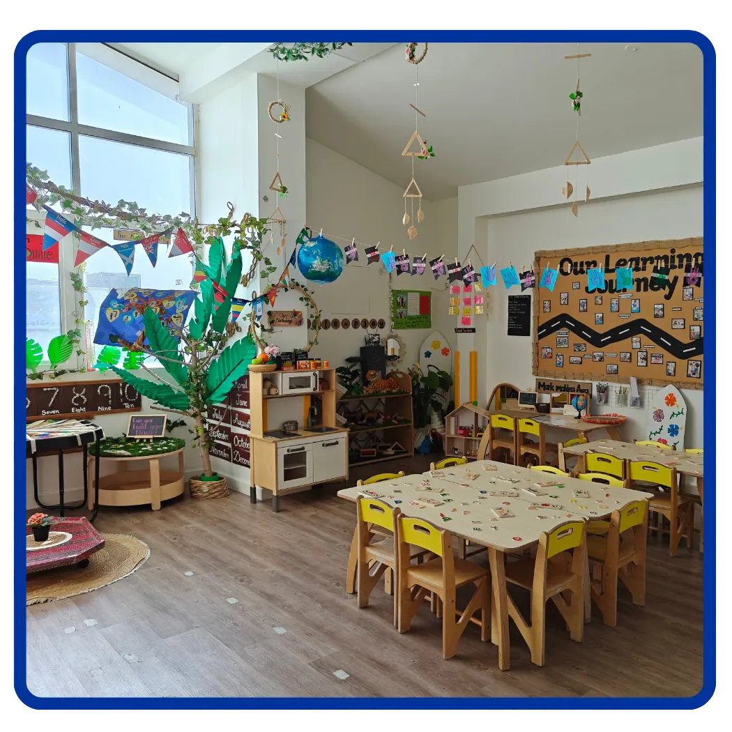 We follow the British EYFS framework and enrich it with the Reggio Emilia approach, which values curiosity, creativity, and hands-on discovery. Every classroom is thoughtfully prepared to invite exploration, self-expression, and collaboration, helping children build a strong foundation for lifelong success.