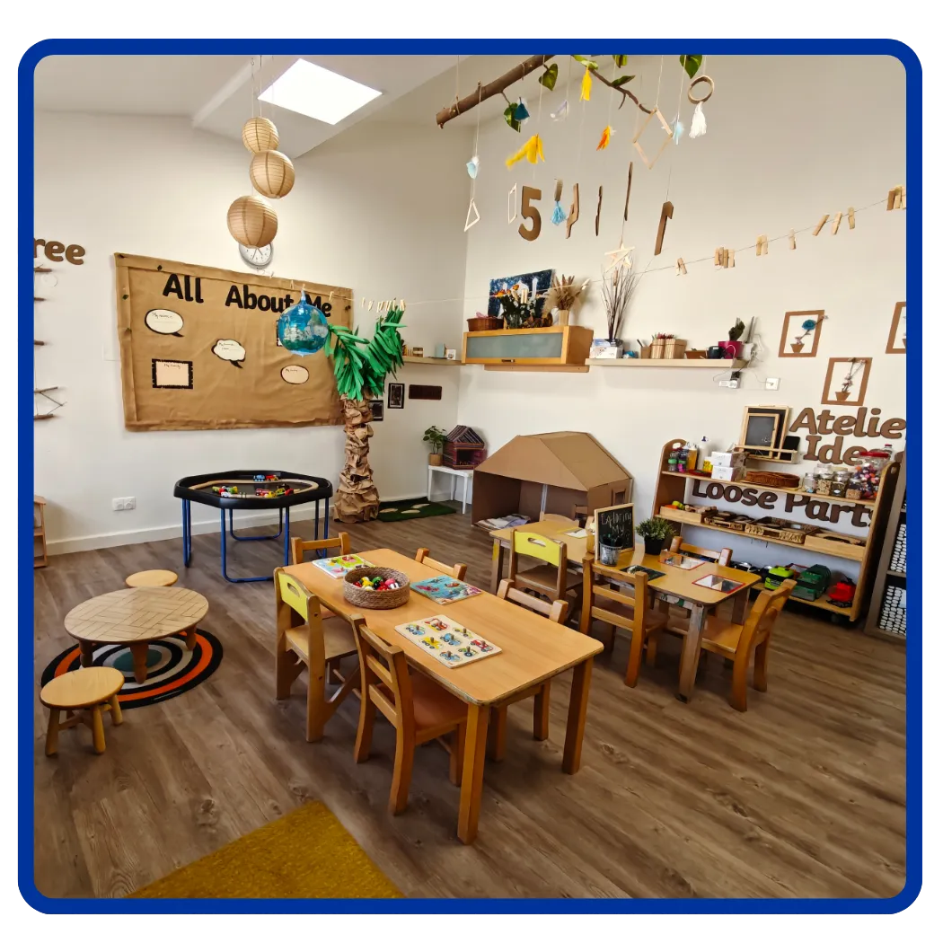 Our philosophy is rooted in learning through play, creativity, and exploration. By blending indoor and outdoor classrooms with natural learning materials, we create a warm, home-away-from-home environment where children feel empowered and ready to learn.